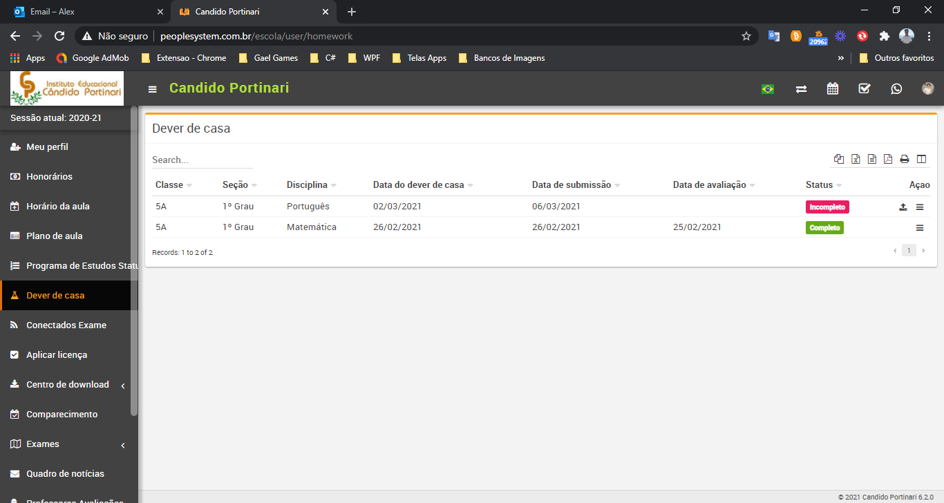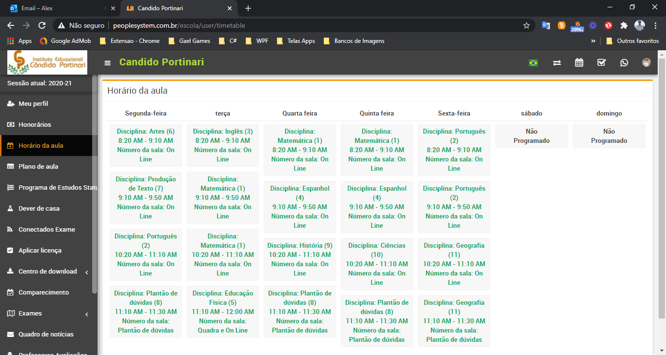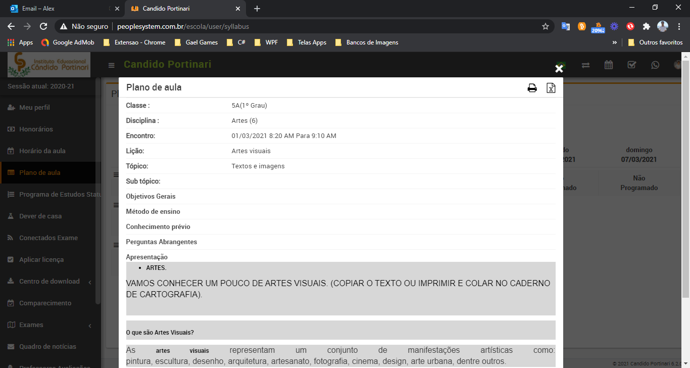 - Acesso Aluno: Contendo o Plano de Aula semanal, controle de lição de casa